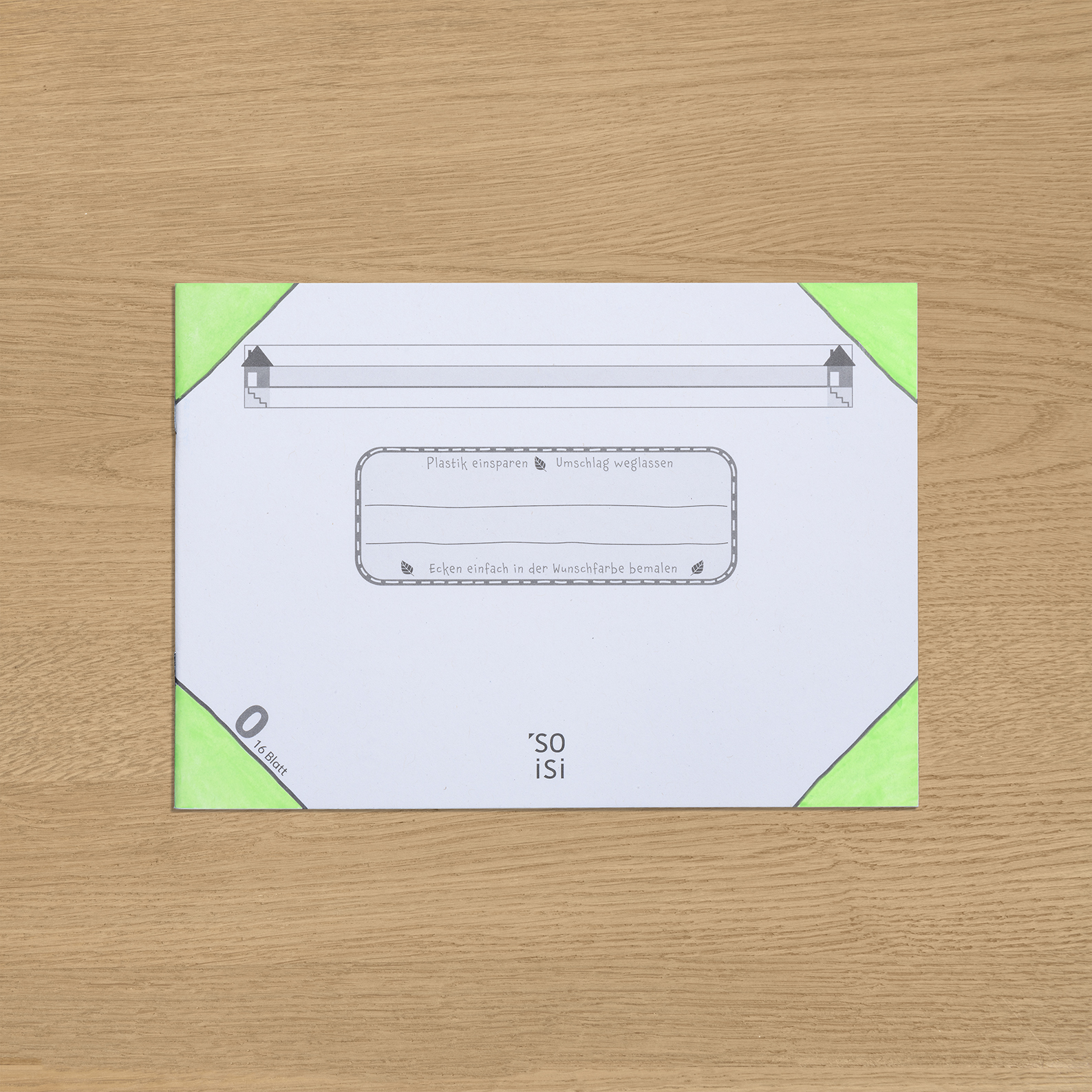Cover 300g/qm, Blauer Engel, 16 Blatt, 80 g/qm. Weißegrad 80%. Ohne Umschlag verwenden, Ecken in der Wunschfarbe bemalen