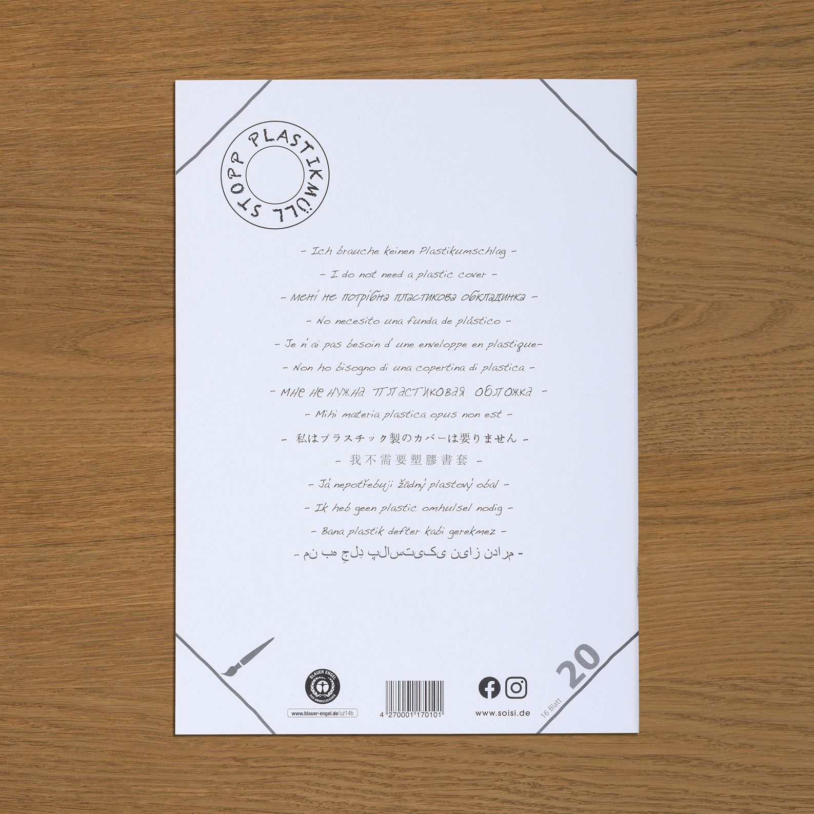 Cover 300g/qm, Blauer Engel, 16 Blatt, 80 g/qm. Weißegrad 80%. Ohne Umschlag verwenden, Ecken in der Wunschfarbe bemalen
