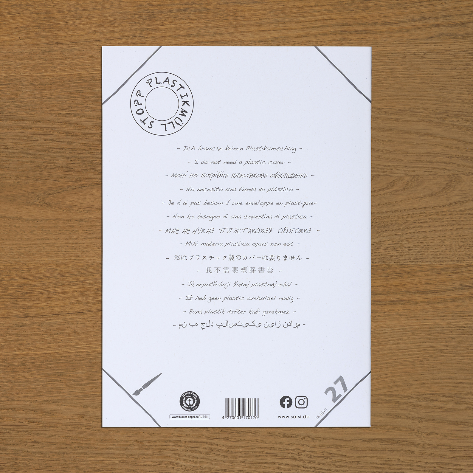 Cover 300g/qm, Blauer Engel, 16 Blatt, 80 g/qm. Weißegrad 80%. Ohne Umschlag verwenden, Ecken in der Wunschfarbe bemalen