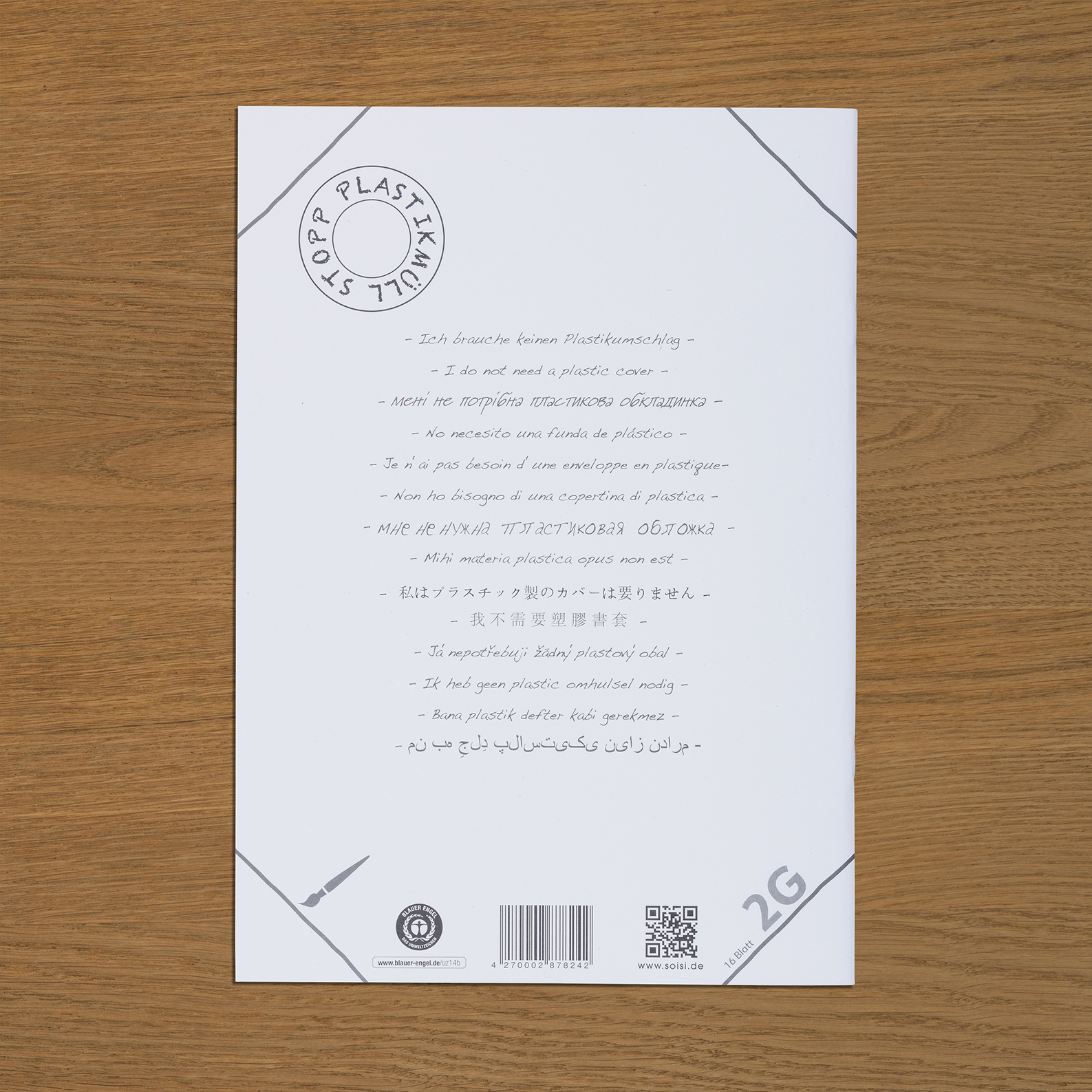 Cover 300g/qm, Blauer Engel, 16 Blatt, 80 g/qm. Weißegrad 80%. Ohne Umschlag verwenden, Ecken in der Wunschfarbe bemalen