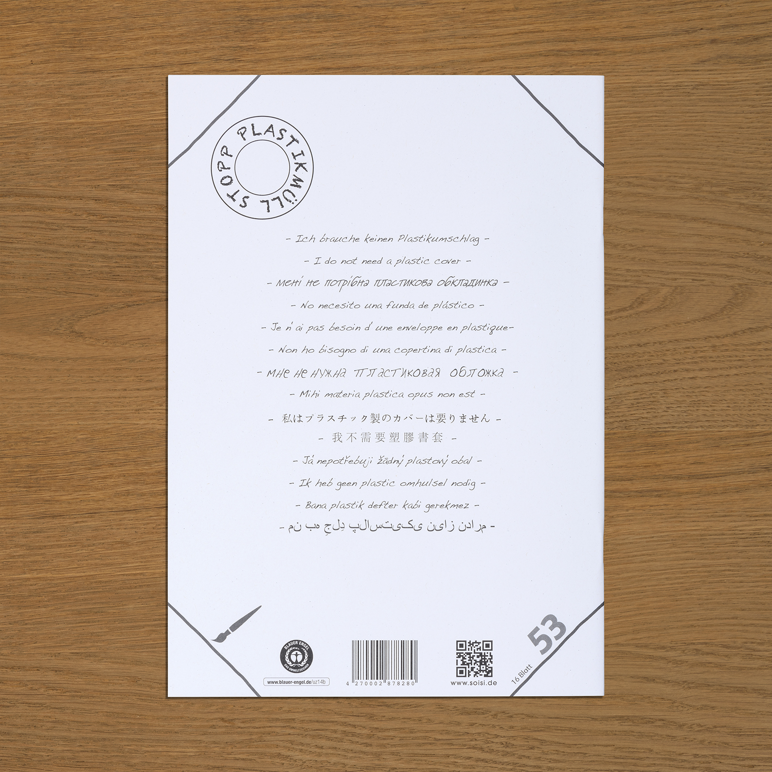 Cover 300g/qm, Blauer Engel, 16 Blatt, 80 g/qm. Weißegrad 80%. Ohne Umschlag verwenden, Ecken in der Wunschfarbe bemalen