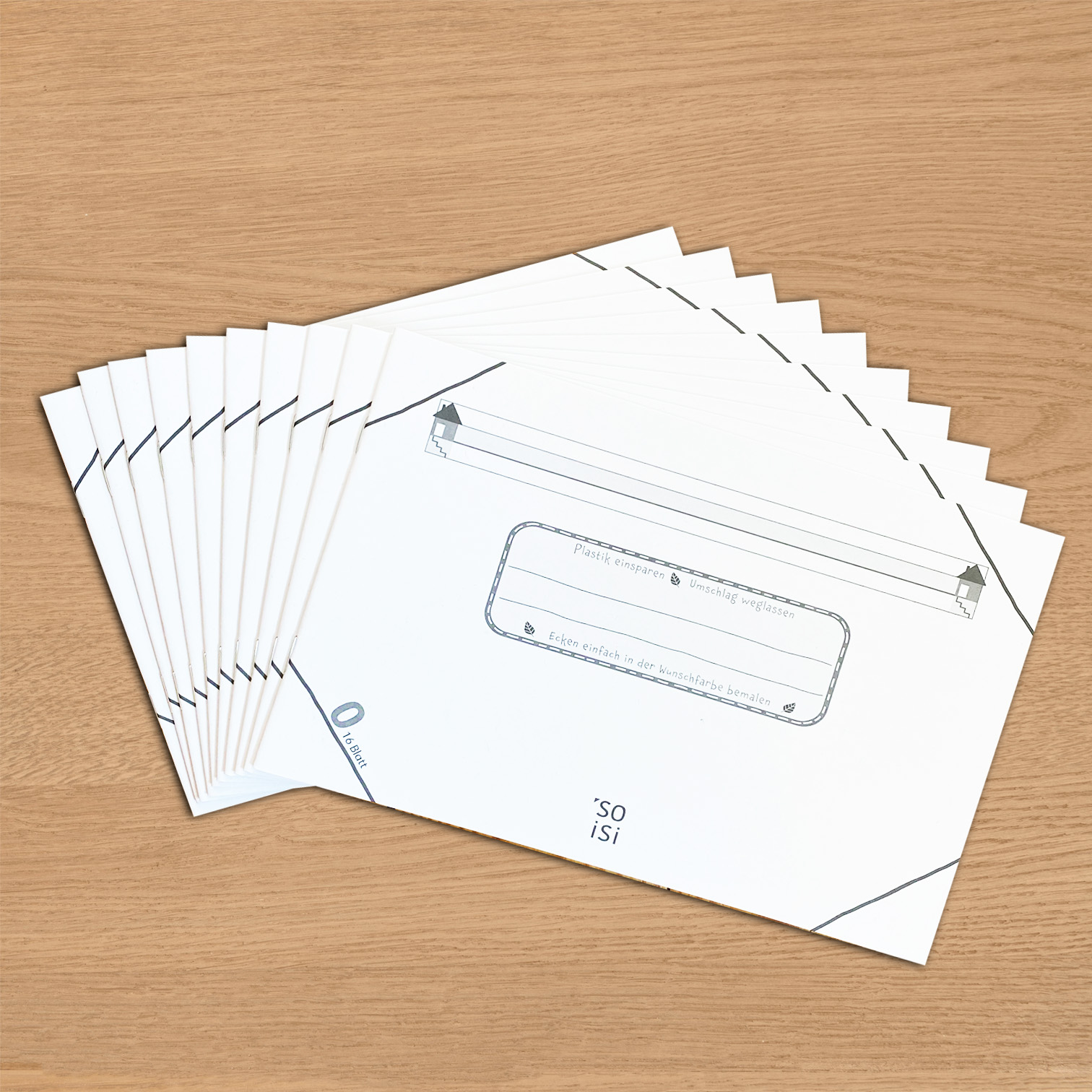 Cover 300g/qm, Blauer Engel, 16 Blatt, 80 g/qm. Weißegrad 80%. Ohne Umschlag verwenden, Ecken in der Wunschfarbe bemalen