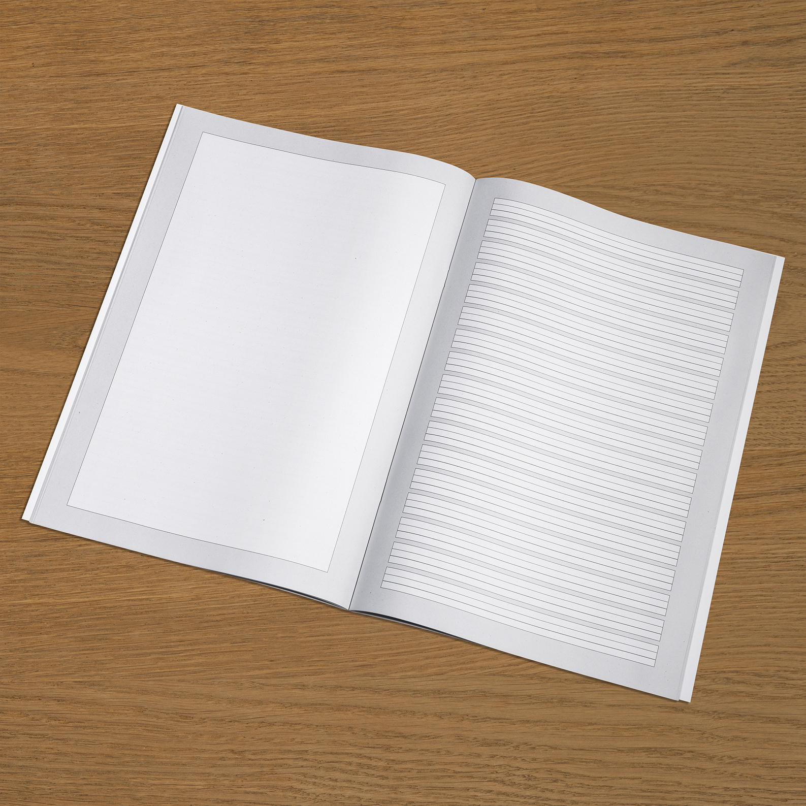 DIN-A4 Geschichtenheft für die 2. Klasse, linke Seite zum freien Gestalten und rechte Seite mit Linien für Klasse 2 zum Schreiben, Lineatur 2G